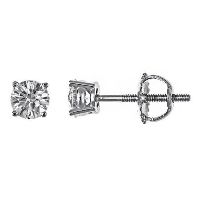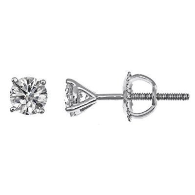 Round Brilliant Cut Diamond Stud Earrings 4-Prong Set 14k White Gold (1.17 Cttw, VS Clarity, H Color): Features !