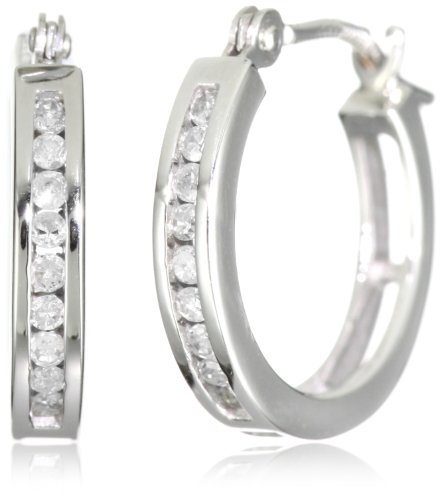 14k White or Yellow Gold Diamond Channel-Set Hoop Earrings