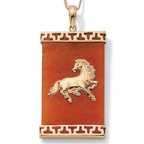 A spirited horse, the Chinese symbol for speed and perseverance, gives this red jade pendant just the right touch of Oriental chic. Beautifully detailed in 14k gold. Chain sold separately. As this item contains genuine jade, the actual stone colors may vary slightly. Palm Beach Jewelry Item #: 32738